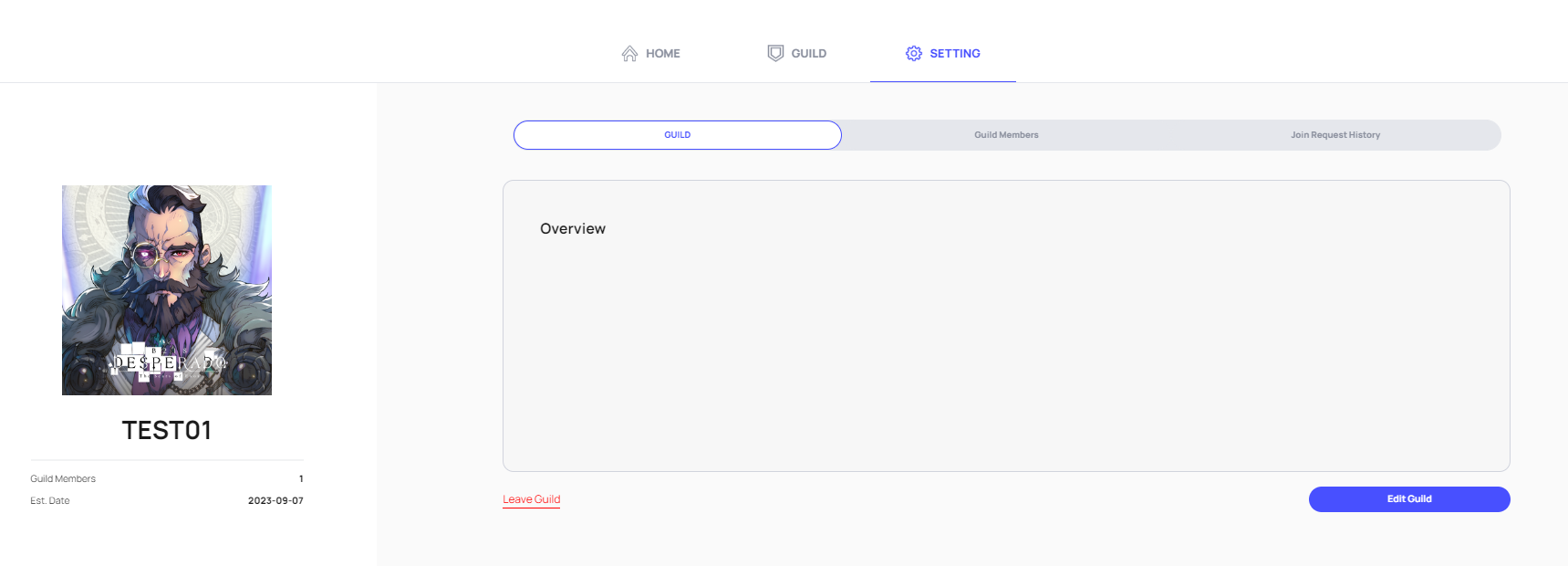 To create a GUILD, you can submit a Guild creation request by entering a GUILD NAME and uploading a GUILD IMAGE through the GUILD - SETTING - Create Guild menu. However, this is currently only available to users who have created a game account in DESPERADO B218: The Scars of Exos, and the creation of a GUILD is subject to review by the operations team to ensure that inappropriate content or images have not been used.