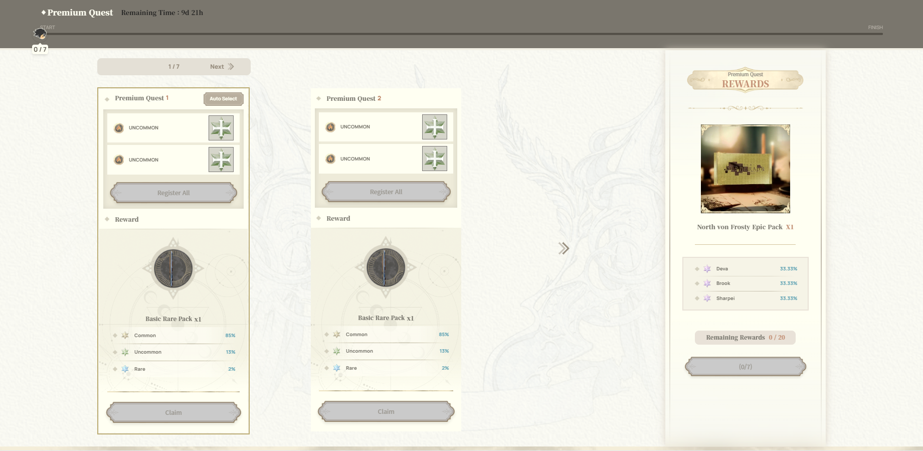 * **Weekly:** QUEST requirements and rewards are reset every week