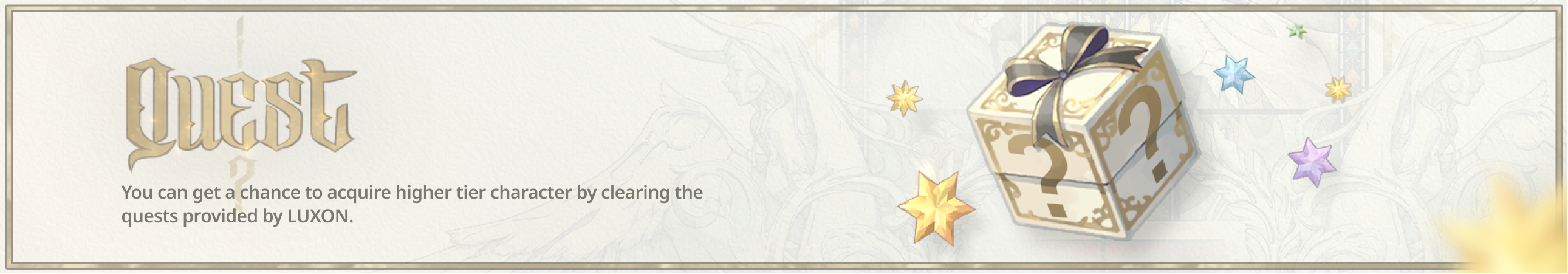 LUXON offers various types of QUESTs. Please be aware that rewards for each QUEST type are updated according to their respective cycles.
